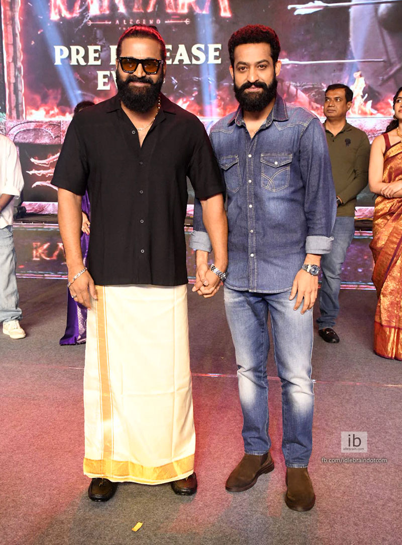కాంతారతో పాన్ ఇండియా బ్లాక్బస్టర్ అందుకున్న రిషబ్ శెట్టి మోస్ట్ ఎవైటెడ్ ప్రీక్వెల్ కాంతార: చాప్టర్ 1తో రాబోతున్నారు. ఈ చిత్రాన్ని ఆయన స్వయంగా దర్శకత్వం వహించి, నటించారు. ఇటీవల విడుదలైన థియేట్రికల్ ట్రైలర్ అన్ని భాషలలో హ్యుజ్ బజ్ క్రియేట్ అంచనాలను భారీగా పెంచింది. ప్రఖ్యాత పాన్-ఇండియా నిర్మాణ సంస్థ హోంబలే ఫిల్మ్స్ నిర్మించిన ఈ చిత్రం అక్టోబర్ 2న దసరాకు విడుదల కానుంది. ఈ సందర్భంగా మేకర్స్ ప్రీరిలీజ్ ఈవెంట్ నిర్వహించారు. యంగ్ టైగర్ ఎన్టీఆర్ ముఖ్య అతిథిగా హాజరైన ఈ వేడుక చాలా గ్రాండ్ గా జరిగింది.
