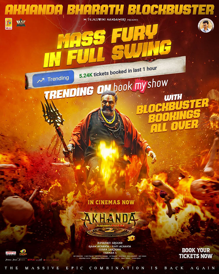 Already, the movie has crossed Rs.100 crores gross worldwide with USA gross nearing 1 Million. Akhanda 2 is proving to be a successful venture as it is attracting family audiences to the theatres. The audiences are praising NBK for his thunderous performance as a Super Human who devoted his life to Lord Shiva.
