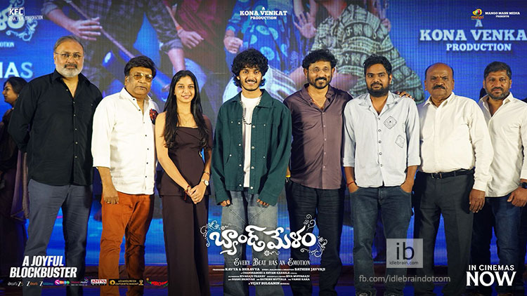 హర్ష్ రోషన్, శ్రీదేవీ జంటగా బ్లాక్ బస్టర్ రచయిత కోన వెంకట్ నిర్మాణ సారథ్యంలో వచ్చిన ‘బ్యాండ్ మేళం’ చిత్రానికి ప్రేక్షకుల నుంచి అద్భుతమైన రెస్పాన్స్ వచ్చింది. మ్యాంగో మాస్ మీడియా సమర్పణలో కోన ఫిల్మ్ కార్పొరేషన్ బ్యానర్ మీద కావ్య, శ్రావ్య నిర్మించిన ఈ సినిమాకి మంచి విజయం దక్కింది. సతీష్ జవ్వాజీ దర్శకత్వంలో తెరకెక్కిన ఈ మూవీ మార్చి 26న విడుదలై సక్సెస్ ఫుల్గా రన్ అవుతోంది. ఈ క్రమంలో మంగళవారం నాడు బ్యాండ్ మేళం జాయ్ ఫుల్ బ్లాక్ బస్టర్ థాంక్యూ మీట్ను నిర్వహించారు. ఈ కార్యక్రమంలో..