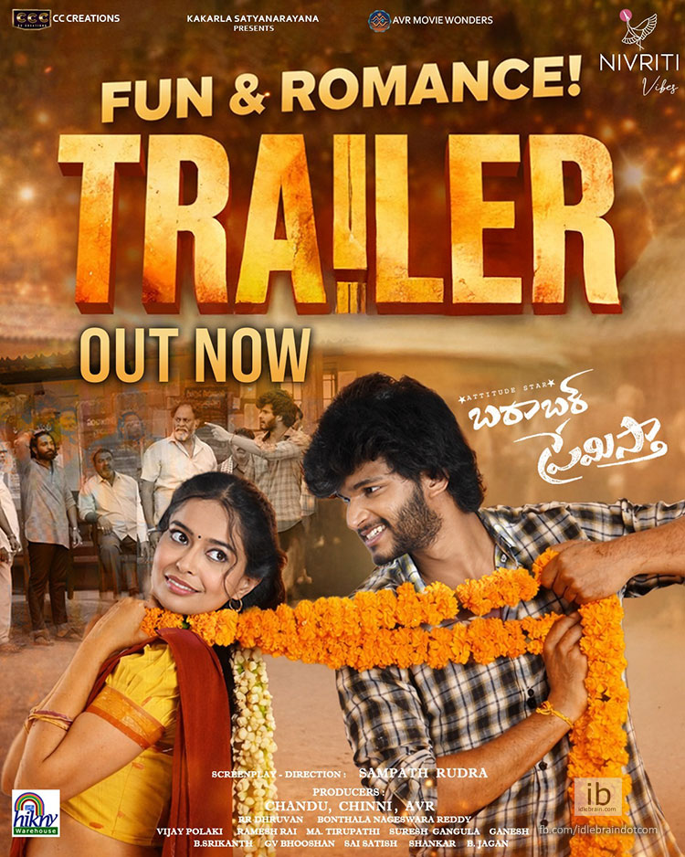 Attitude Star Chandra Hass is coming up with Barabar Premistha, being directed by Sampath Rudra and produced by Geda Chandu, Gayatri Chinny, and AVR under the banners of CC Creations and AVR Movie Wonders, with Kakarla Satyanarayana presenting. Miss India finalist Meghna Mukherjee plays the female lead, while Arjun Mahi (Ishtamga fame) appears as the antagonist. Every promotional material released so far generated strong buzz for the movie. Today, the makers dropped the film’s theatrical trailer.