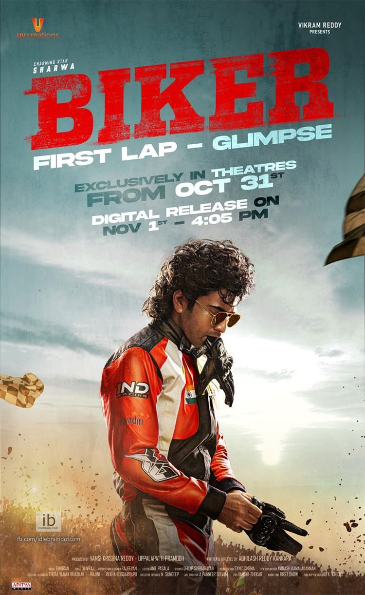 Charming Star Sharwa, Abhilash Reddy Kankara, UV Creations’ biker-glimpse-october31 First Lap Glimpse Screening Exclusively In Theatres From October 31st, Digital Launch On November 1st