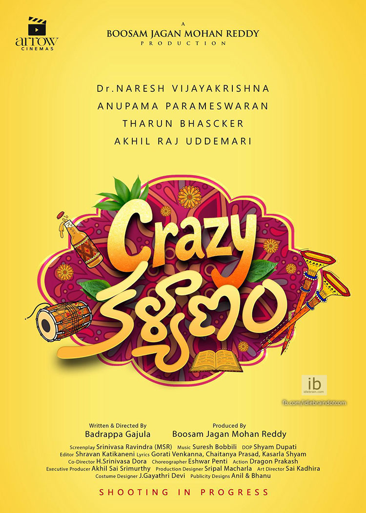 నరేష్ వీకే, అనుపమ పరమేశ్వరన్, తరుణ్ భాస్కర్, రాజ్ వెడ్స్ రాంబాయి ఫేమ్ అఖిల్ ఉడ్డెమారి ప్రధాన పాత్రల్లో నటిస్తున్న సినిమా "క్రేజీ కల్యాణం". ఈ చిత్రాన్ని యారో సినిమాస్ బ్యానర్ పై ప్రొడక్షన్ నెం. 2గా ప్యాషనేట్ ప్రొడ్యూసర్ బూసమ్ జగన్ మోహన్ రెడ్డి నిర్మిస్తున్నారు. దర్శకుడు బద్రప్ప గాజుల రూపొందిస్తున్నారు.