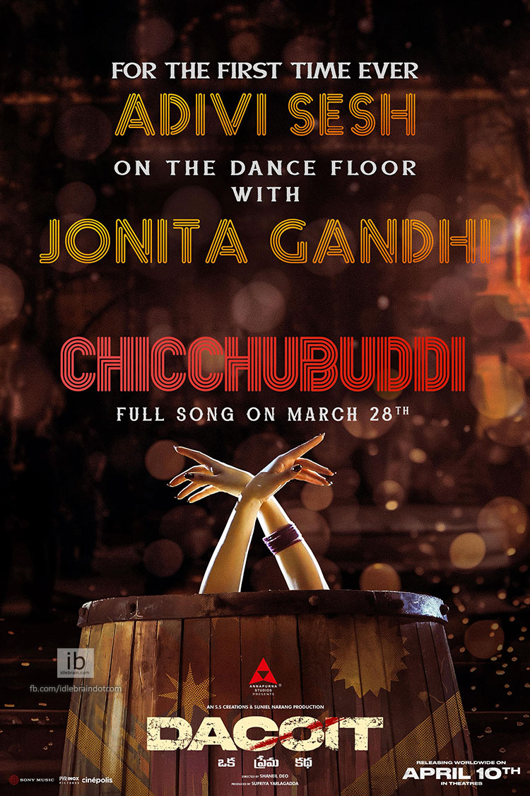 తాజాగా మేకర్స్ సెకండ్ సింగిల్ అప్డేట్ ఇచ్చారు. డెకాయిట్ సెకండ్ సింగిల్ చిచ్చుబుడ్డి మార్చి 28న రిలీజ్ కానుంది. ఇది అదిరిపోయే డాన్సింగ్ నెంబరు. ఈ పాట కోసం చార్ట్ బస్టర్ ట్యూన్ కంపోజ్ చేశారు. ఈ సాంగ్లో అడివి శేష్ డాన్సింగ్ మూమెంట్స్ స్పెషల్ ఎట్రాక్షన్ గా ఉండబోతున్నాయి.