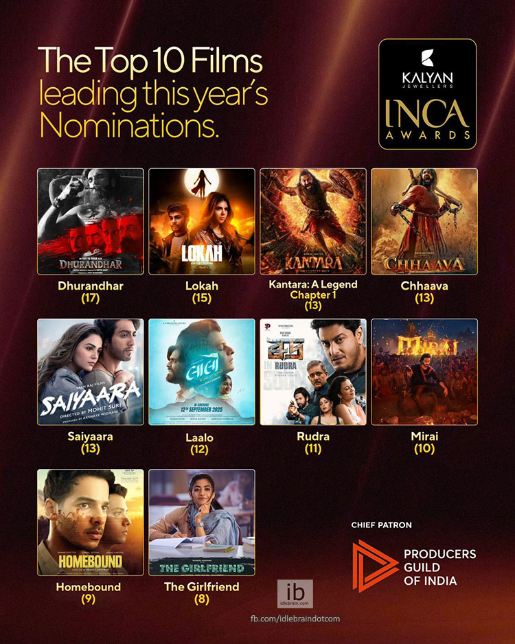 ఇండియన్ నేషనల్ సినీ అకాడమీ తొలి ఐఎన్సీఏ అవార్డ్స్ నామినేషన్స్ ప్రకటించింది. ధురంధర్, లోకాహ, కాంతారా, లాలో, రుద్ర, మిరాయి చిత్రాలు నామినేషన్స్లో ముందంజలో నిలిచాయి.