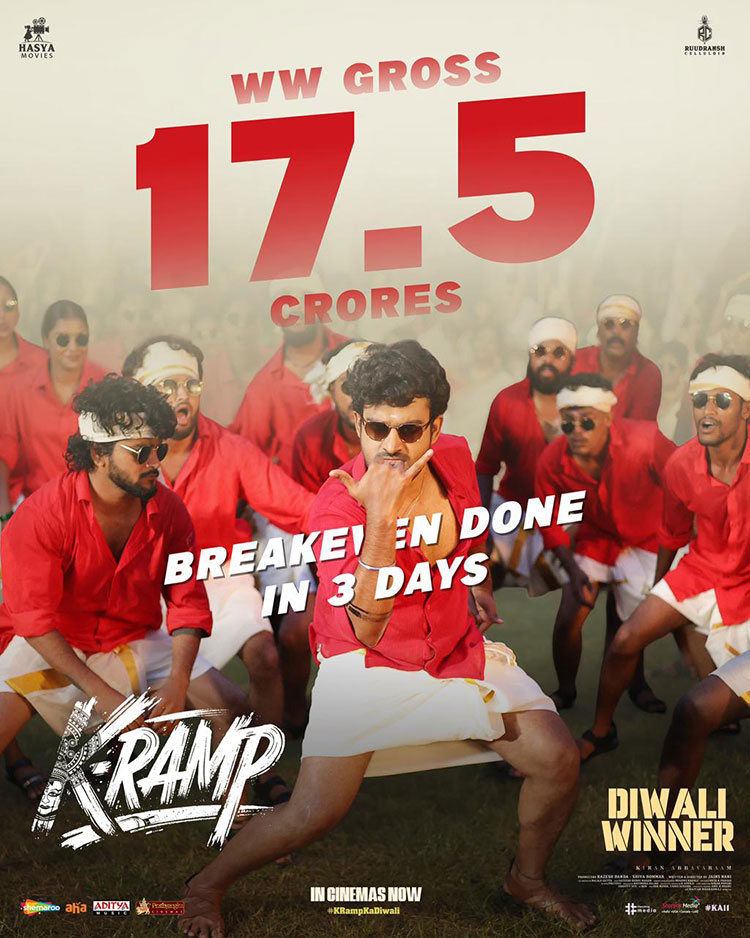 3 రోజుల్లో రూ.17.5 కోట్ల గ్రాస్ వసూళ్లతో బ్రేక్ ఈవెన్ సాధించిన దీపావళి విన్నర్ కిరణ్ అబ్బవరం "K-ర్యాంప్" మూవీ