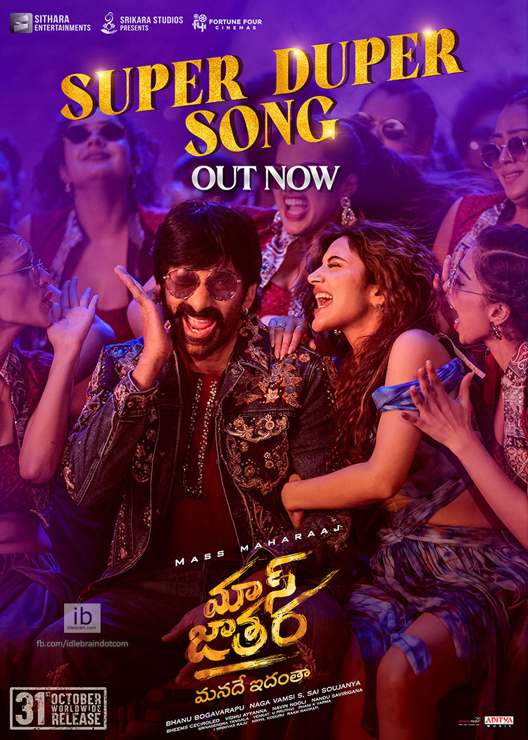 రెండు ఉత్సాహభరితమైన పాటలు, ఓ మంచి మెలోడీతో ఇప్పటికే 'మాస్ జాతర' ఆల్బమ్ ప్రేక్షకుల హృదయాల్లో ప్రత్యేక స్థానం సంపాదించుకుంది. తాజాగా విడుదలైన మాస్ ని ఉర్రూతలూగించే ఈ 'సూపర్ డూపర్' గీతం, ఆ స్థానాన్ని మరింత పదిలం చేసింది. మునుపటి మాస్ మహారాజా రవితేజను గుర్తుచేసేలా, ఆయనకు మాత్రమే సాధ్యమయ్యే స్వాగ్ ఇందులో ప్రత్యేక ఆకర్షణగా నిలిచింది. శ్రీలీల తన అద్భుతమైన నృత్య ప్రదర్శనతో మరోసారి తెరపై వెలుగులు వెదజల్లారు. రవితేజ-శ్రీలీల ఆన్ స్క్రీన్ కెమిస్ట్రీ, ఈ మాస్ గీతాన్ని ప్రేక్షకులు మెచ్చే నిజమైన వేడుకలా మలిచాయి.