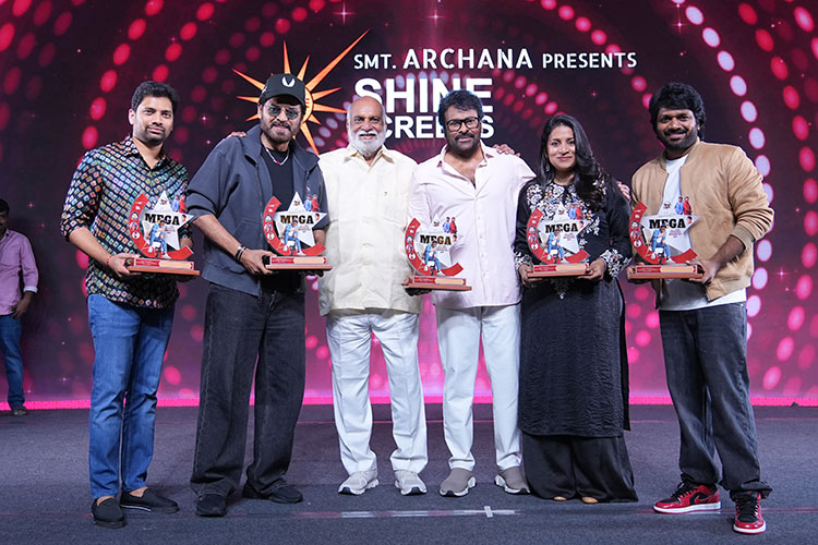 మెగాస్టార్ చిరంజీవి, హిట్ మెషిన్ అనిల్ రావిపూడి ల ఆల్ టైం ఇండస్ట్రీ హిట్ ‘మన శంకర వర ప్రసాద్ గారు’. విక్టరీ వెంకటేష్ కీలక పాత్రలో అలరించారు. షైన్ స్క్రీన్స్, గోల్డ్ బాక్స్ ఎంటర్టైన్మెంట్స్ బ్యానర్లపై సాహు గారపాటి, సుస్మిత కొణిదెల నిర్మించిన ఈ చిత్రంలో నయనతార కథానాయిక నటించారు. శ్రీమతి అర్చన ఈ చిత్రాన్ని ప్రజెంట్ చేశారు. సంక్రాంతి కానుకగా ప్రపంచవ్యాప్తంగా జనవరి 12న విడుదలైన ఈ చిత్రం మెగా బ్లాక్ బస్టర్ సక్సెస్ ని అందుకొని రికార్డ్ బ్రేకింగ్ కలెక్షన్స్ తో హౌస్ ఫుల్ గా రన్ అవుతోంది. ఈ సందర్భంగా మేకర్స్ ఆల్ టైం ఇండస్ట్రీ హిట్ (రీజనల్ ఫిల్మ్స్) సెలబ్రేషన్ ని గ్రాండ్ గా నిర్వహించారు. ఈ వేడుకలో సినిమా యూనిట్, డిస్ట్రిబ్యూటర్స్, ఎగ్జిబిటర్స్ కి షీల్డ్స్ అందించారు. దర్శకులు కె రాఘవేంద్రరావు, వివి వినాయక్, నిర్మాత దిల్ రాజు, సుప్రియ యార్లగడ్డ పలువురు ప్రముఖులు ఈ వేడుకలో పాల్గొన్నారు.