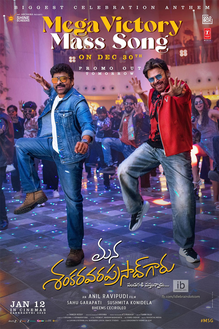 The wait is almost over, and the excitement is reaching a fever pitch. Fans are eagerly looking forward to witnessing Megastar Chiranjeevi and Victory Venkatesh together in the much-awaited, crazy entertainer Mana Shankara Vara Prasad Garu, directed by Anil Ravipudi. And now, here comes the big update everyone has been waiting for. The third single, titled Mega Victory Mass Song, will be released on December 30th, with its promo set to drop tomorrow.