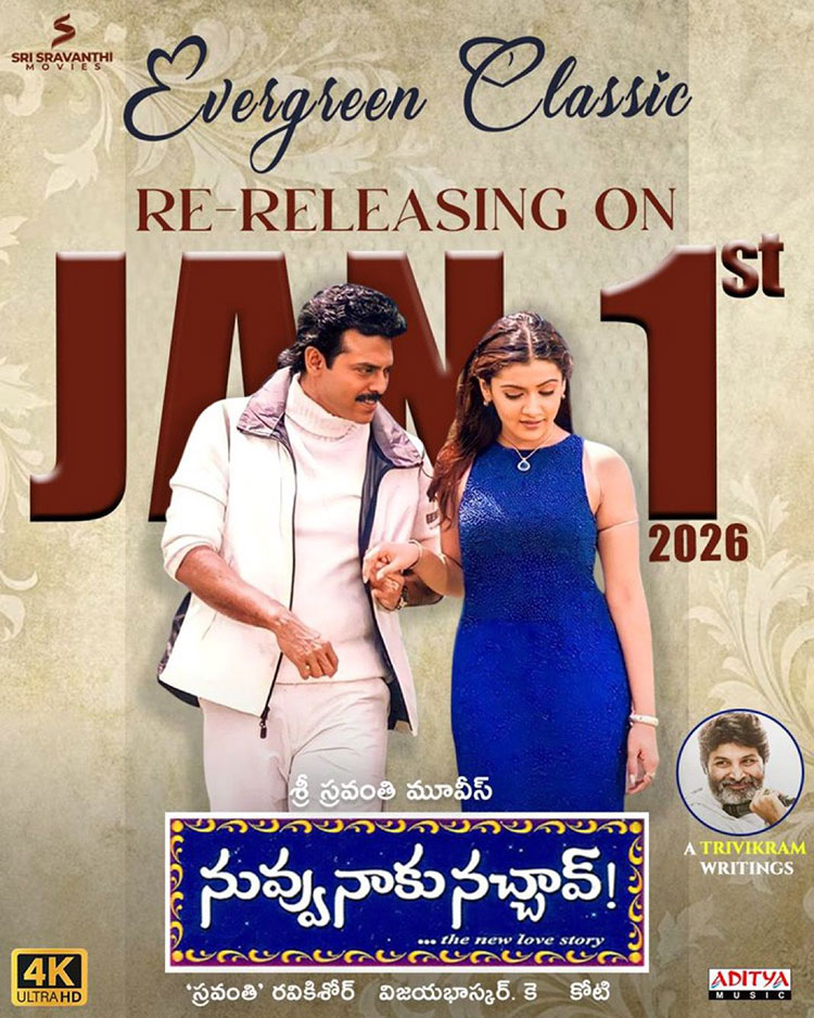 Twenty-four years ago, on September 6, 2001, Telugu cinema witnessed a magical moment with the release of Nuvvu Naaku Nachav. It was a film that left audiences completely satisfied—like a wholesome feast. Even after countless rewatches, its charm remains undiminished, with a repeat value that never feels tiring. That timeless appeal is the reason why the 2026 New Year is set to begin with the grand 4K re-release of this classic, equipped with enhanced technical quality, inviting audiences to relive the joy all over again.