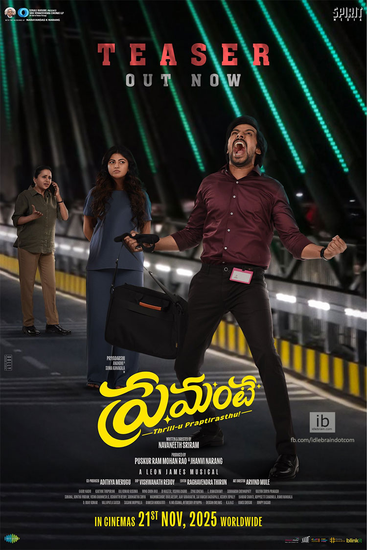 Priyadarshi, known for his strong performances in content-driven films, is back with Premante, a refreshing romantic comedy that takes a witty and heartfelt look at love and marriage. Directed by debutant Navaneeth Sriram, the film stars Anandhi as the female lead, alongside Suma Kanakala in a key role. Produced by Puskur Ram Mohan Rao and Jhanvi Narang under the prestigious Sree Venkateswara Cinemas LLP (SVCLLP) banner, Premante is proudly presented by Rana Daggubati’s Spirit Media. The film also stands as a tribute to the legacy of the late Narayan Das Narang, while Adithya Merugu joins as co-producer. The film’s teaser has been dropped today.