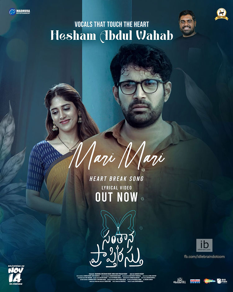 The song “Mari Mari…” features heartfelt lyrics penned by Uma Vangoori, with Sunil Kashyap composing the music and Hesham Abdul Wahab lending his soulful vocals. The song beautifully captures the deep emotions of a man expressing the pain of separation from his beloved wife “Mare mare ninnu vetikelaa, maravadu oka kshanamaina… manasantha nee talapule, prati chotaa nee guruthule…” bringing out the depth of longing and heartbreak.