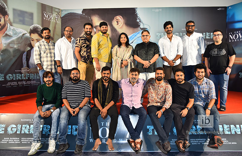 The movie stars National Crush Rashmika Mandanna and talented actor Dheekshith Shetty in the lead roles. It is being jointly produced by Geetha Arts and Dheeraj Mogilineni Entertainment, presented by Allu Aravind. The film is written and directed by Rahul Ravindran and produced by Dheeraj Mogilineni and Vidya Koppineedi. The Girlfriend is an intense and emotional love story that will release on November 7 in Telugu and Hindi, and on November 14 in Tamil, Malayalam, and Kannada across the world. The team held a grand pre-release press meet in Hyderabad today.