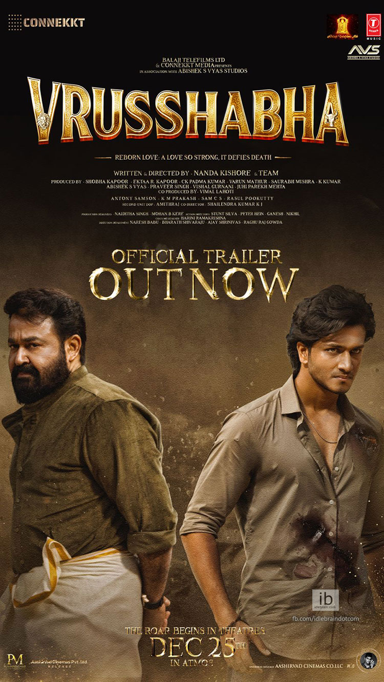 Overall, the trailer promises an epic saga packed with action and drama. The makers describe Vrusshabha as an epic that will explore the deep and unshakable bond between a father and son - a relationship that faces an unexpected test. The film spans two worlds and timelines, moving from the grandeur of a historic kingdom to the intensity of the modern era. Geetha Film Distributors is planning a grand release for the film. Shot simultaneously in Malayalam and Telugu, with releases in Hindi and Kannada, Worldwide Release: 25th December 2025.