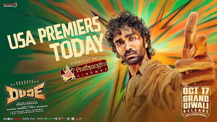 The prestigious pan-India banner Mythri Movie Makers is set for the grand worldwide release of its unique romantic comedy DUDE, starring young sensation Pradeep Ranganathan and Premalu fame Mamitha Baiju. The movie hits theaters worldwide tomorrow, with USA premieres today.
